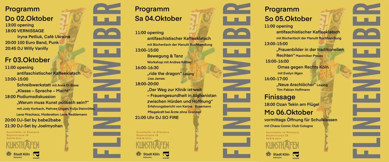 Mit der Ausstellung Flintenweiber_#4reloaded bringt das Flintenweiber Kollektiv ein Stück verdrängter Geschichte nach Köln – und verknüpft es mit aktuellen feministischen und gesellschaftspolitischen Fragestellungen.